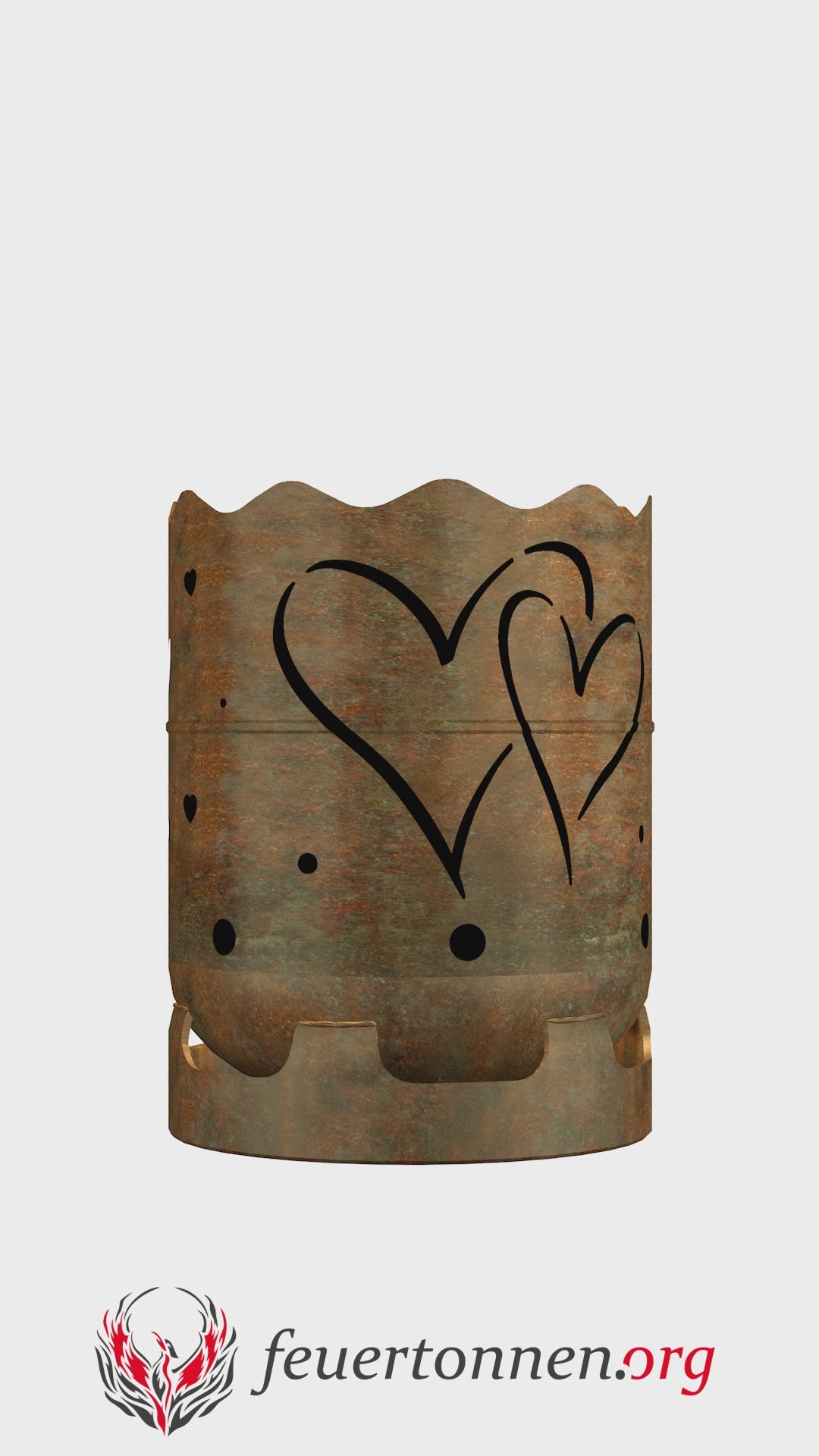 - Zwei Herzen, eine Geschichte: Auf der Vorderseite sind zwei ineinander verschlungene Herzen eingearbeitet, die für eure unzertrennliche Liebe stehen. Wenn das Feuer lodert, werfen die Flammen ein sanftes Licht durch dieses Motiv und unterstreichen die Verbundenheit, die ihr teilt.